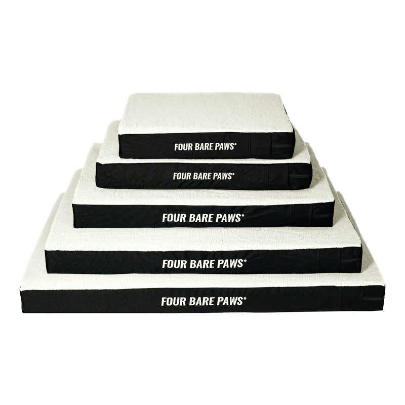 Give your furry friend the ultimate in comfort and versatility with our Sherpa-topped flat surface dog bed by Four Bare Paws. Designed in the UK with both style and practicality in mind, this luxurious bed features a premium plush Sherpa fleece top that offers a warm, cosy haven perfect for restful naps.