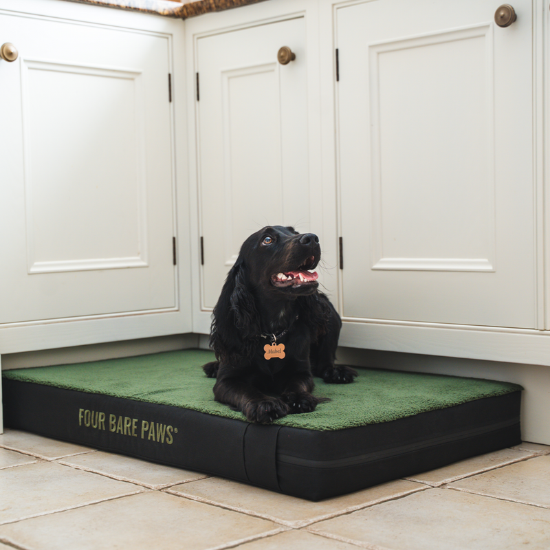 Give your furry friend the ultimate in comfort and versatility with our Sherpa-topped flat surface dog bed by Four Bare Paws. Designed in the UK with both style and practicality in mind, this luxurious bed features a premium plush Sherpa fleece top that offers a warm, cosy haven perfect for restful naps.