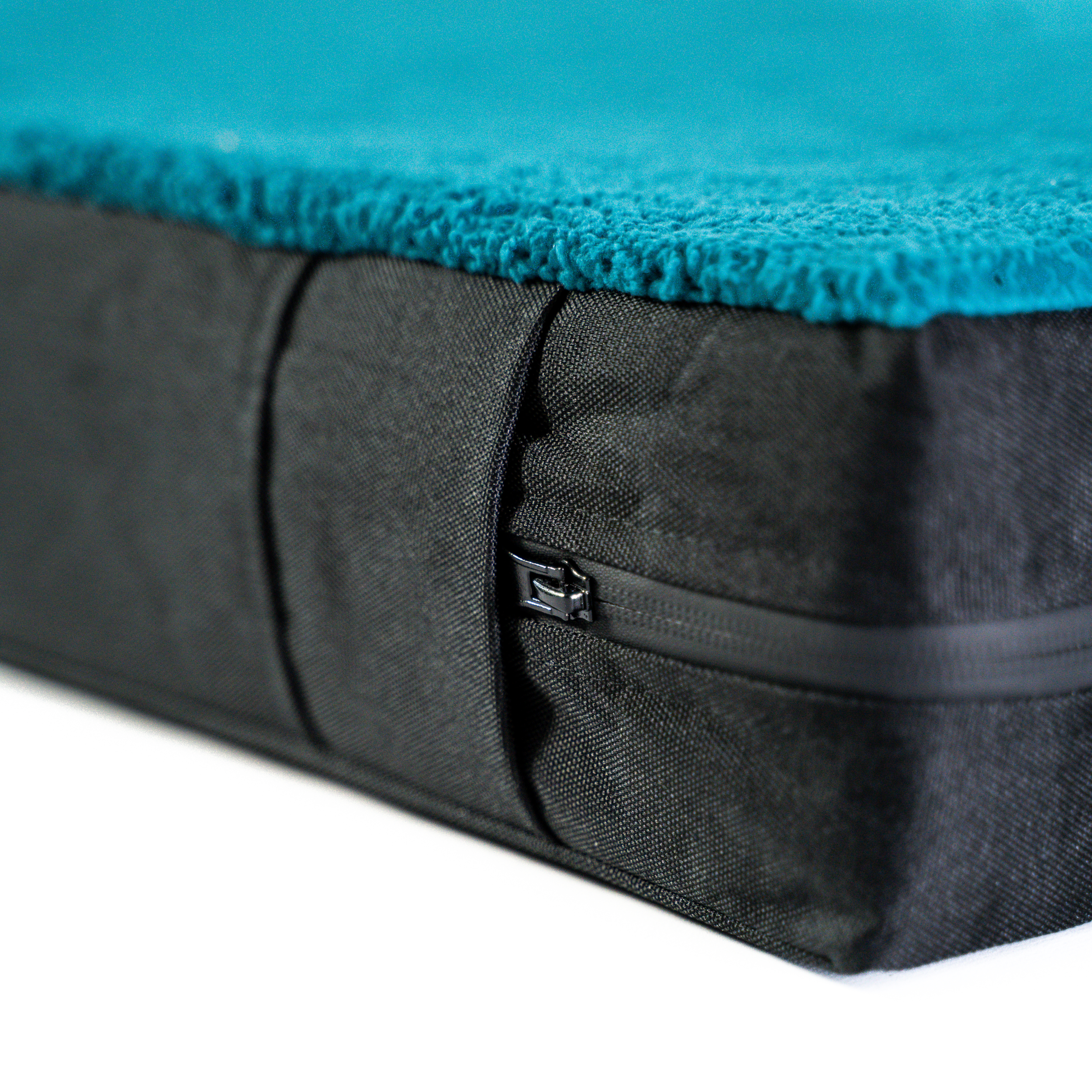 Crafted with durable Oxford fabric, the bed includes a DWR protective base layer and waterproof backing, helping it stay cleaner longer. Flip the bed over for a cooler surface on warmer days. The hidden waterproof L-shaped zipper makes it easy to remove the cover, which is machine washable (cold, short cycle) for stress-free maintenance.