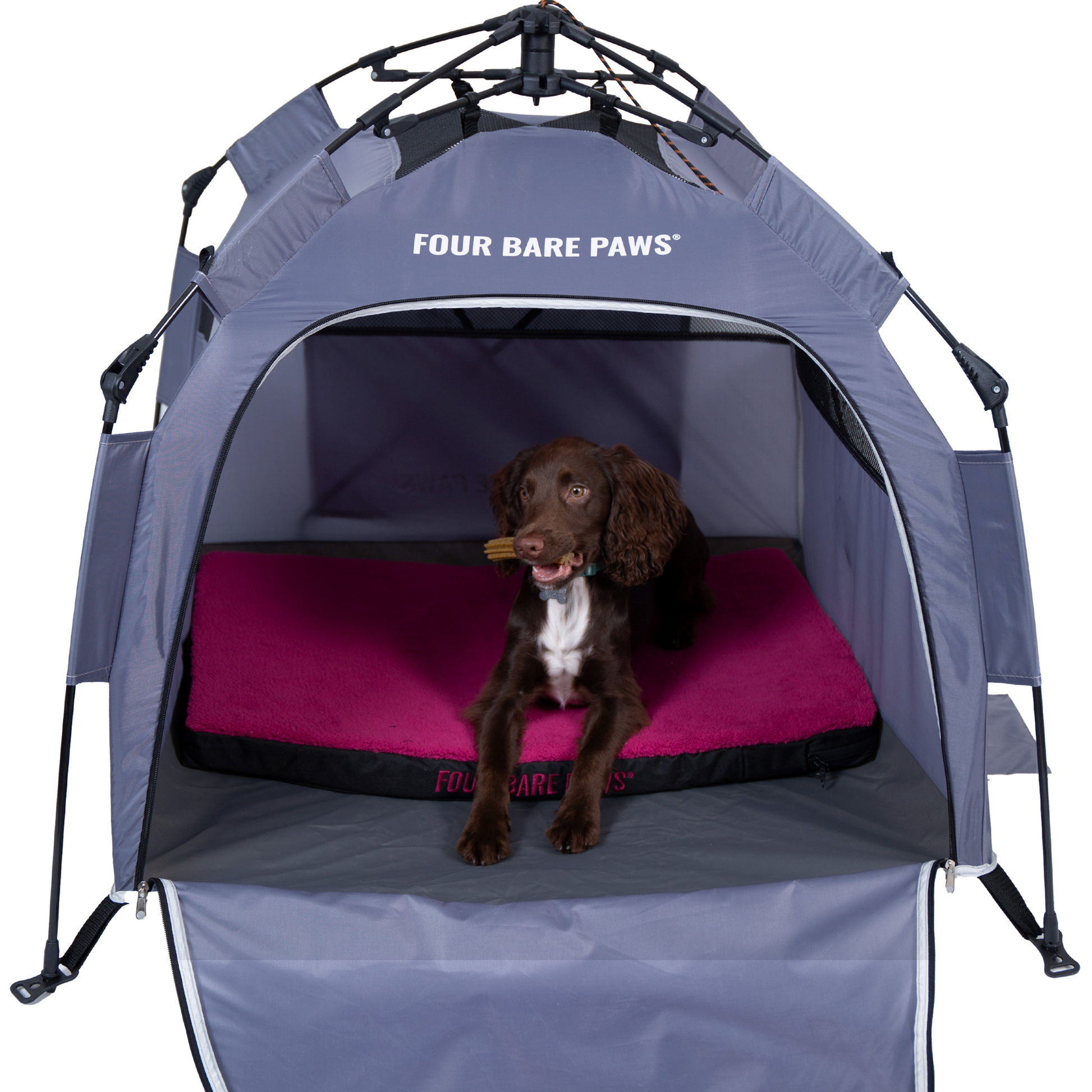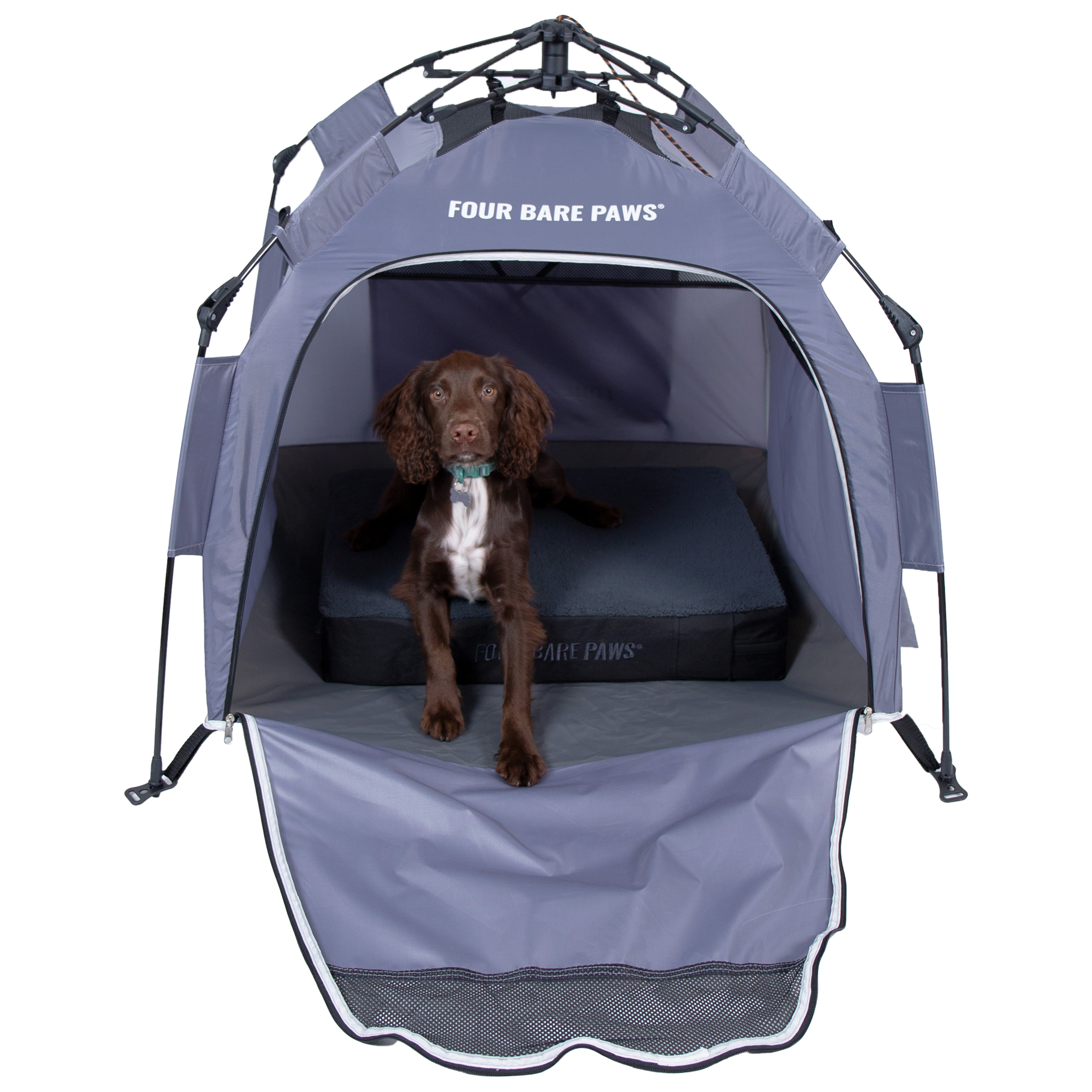 Give your furry friend their own little retreat, anytime, anywhere. The Four Bare Paws Pop-Up pet Tent is designed for adventures big and small, offering instant shade and comfort in seconds. With its quick pop-up design and durable waterproof and UV-resistant fabric, this portable haven keeps your pup cool, protected, and happy whether you’re at the park, beach, campsite, or back garden.
